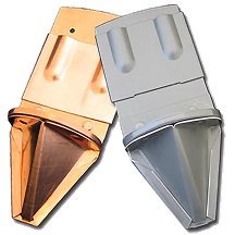 The PD30Z is a robust, gusseted half-round pad-style snow guard specifically designed for installation on New or Existing Metal Shingle roofs. This system features a protective 2” strap sleeve that slides upslope to completely cover the mechanical fasteners, ensuring a weathertight counter-flashed attachment. The PD30Z is available in various premium metals, including Copper, Aluminum, and Rheinzink®, making it ideal for managing snow and ice on metal shingle systems.
