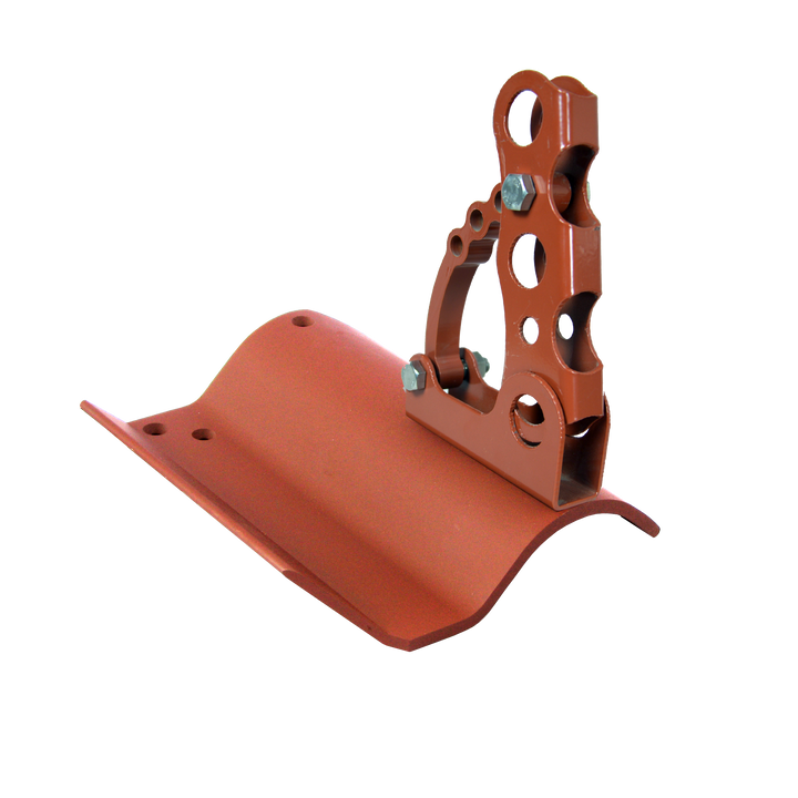 The PP235LS Ludowici Spanish Pipe-Style Snow Guard is a specialized, height-adjustable snow management system designed to perfectly match and replace a tile on Ludowici Spanish Tile roofs. Available in both Aluminum and Brass options, this bolt-down system features a custom tile base plate and an adjustable bracket with 39° of adjustability for a customized fit to varying roof pitches. It accepts 1” OD pipe (tubing) and is compatible with optional accessories like Ice Screens, providing robust snow retention for Spanish tile roofs.