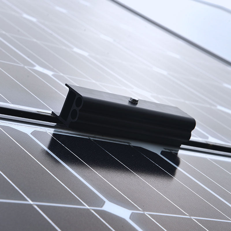 Solar Snow Dog-BLK is an individual pad-style snow guard explicitly designed for solar arrays. This clamp-on aluminum system (available in anodized black) is installed upslope between solar panels, fitting horizontal joints from 3/8” to 7/8” wide without penetrating the panels. The Snow Dog helps hold and break up a sliding snow mass, preventing dangerous roof snow avalanches, and is recommended as part of a complete solar snow management solution.