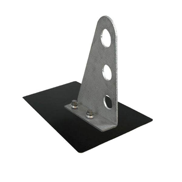 The SSG-313H3AL-812BLK Pipe-Style Snow Guard is a direct-to-deck system designed to provide solar snow management on new or existing Composition (Asphalt) Shingle roofs, particularly when used in conjunction with solar panels. This specific model utilizes a matte black 8” x 12” aluminum flashing with an integrated EPDM bushing to create a watertight compression seal when installed into roof rafters. The aluminum bracket comes in a three-pipe configuration, accepts 1” OD pipe (tubing), and is compatible with optional Ice Flags and Ice Screens.